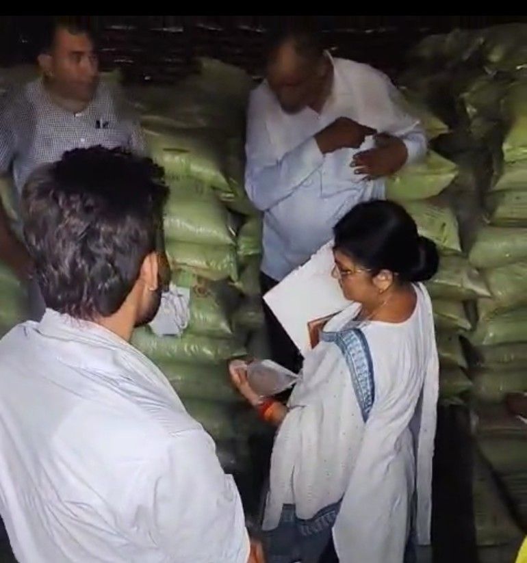 खाद के गोदाम की जांच करती सीएम विजिलेंस इंचार्ज सुनैना