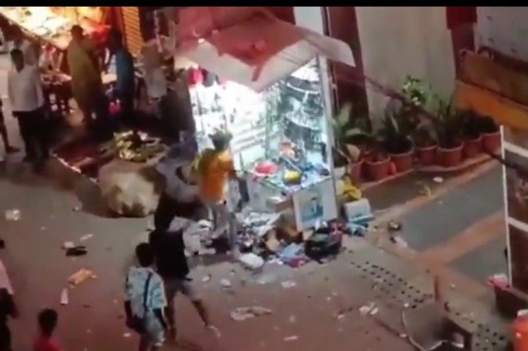 हरिद्वार में हर की पैड़ी के पास कल रात कांवड़ियों ने चश्मे की दुकान तोड़ दी।