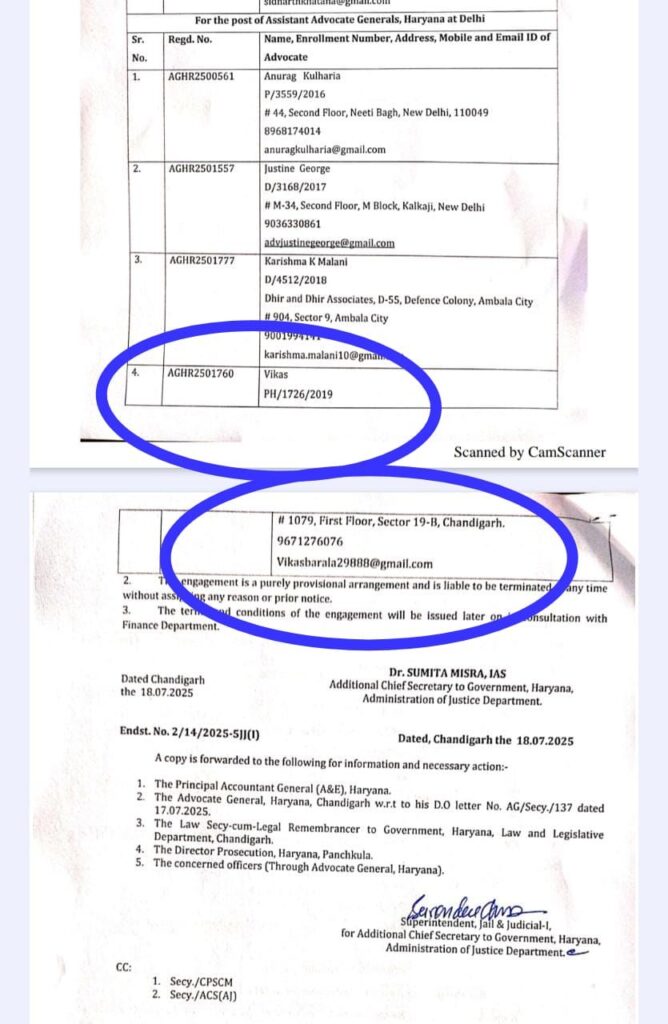 पूरा मामला छुपाने के लिए लिस्ट में सिर्फ विकास नाम दिखाया, पता भी चंडीगढ़ का दर्शाया