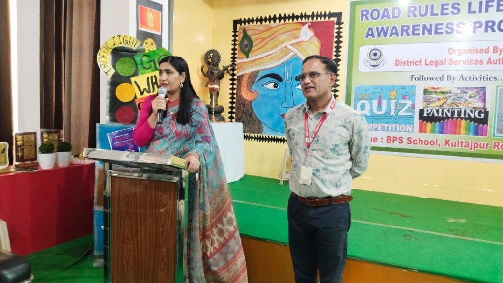 सड़क सुरक्षा नियम सभी के सुरक्षित आवागमन के लिए महत्वपूर्ण हैं। सड़क पर पैदल चलने वालों और वाहन चालकों दोनों को नियमों का पालन करना चाहिए। यह बात जिला विधिक सेवा प्राधिकरण की सचिव एवं मुख्य न्यायिक दंडाधिकारी नीलम कुमारी ने आज भारती पब्लिक स्कूल नारनौल में आयोजित सड़क सुरक्षा जागरूकता कार्यक्रम में बतौर मुख्य अतिथि कही।