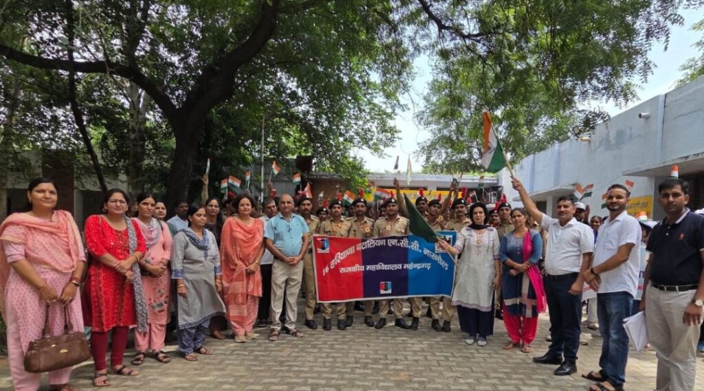 आजादी का अमृत महोत्सव और ‘हर घर तिरंगा’ अभियान के तहत राजकीय महाविद्यालय महेंद्रगढ़ में एक भव्य तिरंगा रैली का आयोजन किया गया। महाविद्यालय परिसर देशभक्ति के गीतों और नारों से गूंज उठा, जब एनसीसी, एनएसएस, इको क्लब के सदस्य तथा सैकड़ों छात्र-छात्राएं एवं स्टाफ सदस्य हाथों में तिरंगा लेकर जोश और उत्साह से भरकर सड़क पर निकले।