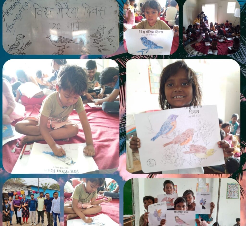 प्रयागराज,21मार्च( जितेंद्र पाण्डेय)।नगर में संचालित संस्था आरोहण फाउंडेशन द्वारा विश्व गौरैया दिवस के उपलक्ष्य पर पेंटिंग्स, लेखन, आवास और गीत