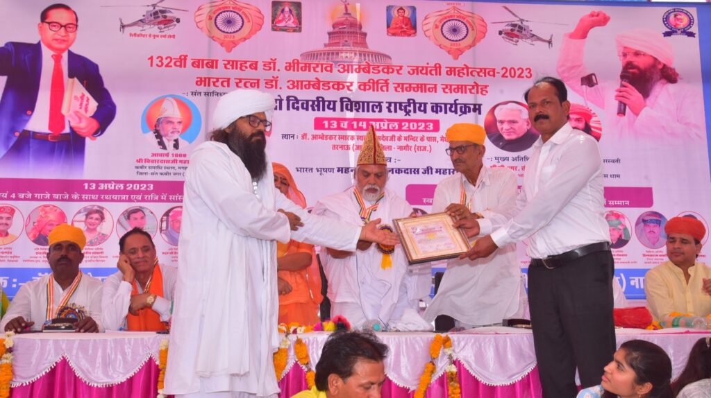 महेंद्रगढ़,7अप्रैल(कुणाल सिंह)।शहर के समाजसेवी व साहित्यकार एडवोकेट शैलेंद्र सिंह शैली को बाबासाहेब आंबेडकर के 132 वे जयंती महोत्सव में 14