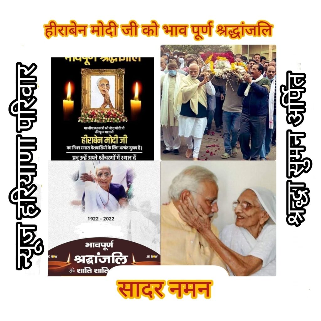नई दिल्ली,30दिसंबर(न्यूज हरियाणा)। हीराबेन मोदी* प्रधानमंत्री नरेंद्र मोदी की मां हीराबेन का 100 साल की उम्र में अहमदाबाद के