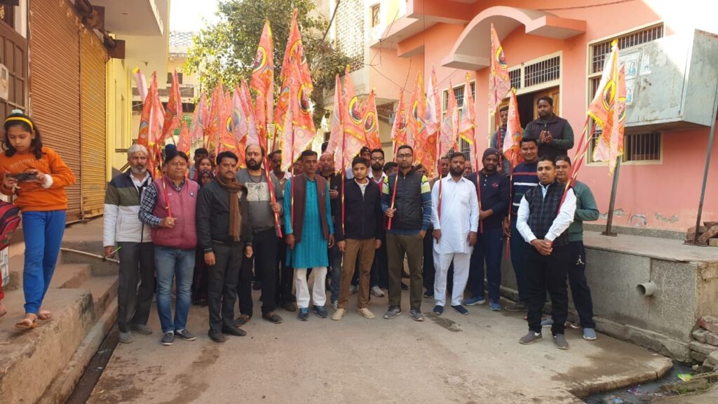महेन्द्रगढ़,17जनवरी(सुशील शर्मा)।में मौहल्ला बिढाट से हर वर्ष की भांति इस बार भी बाबा जयरामदास धाम पाली के लिये पैदल ध्वजा