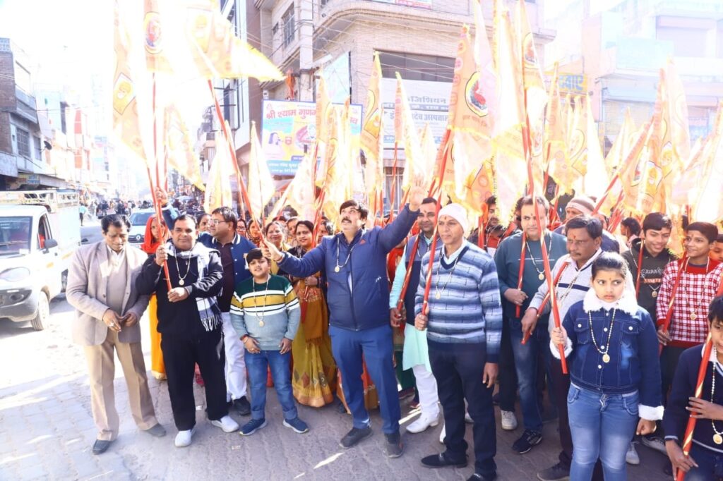 महेंद्रगढ़,15 जनवरी(शैलेन्द्र सिंह)नगर के करेलिया बाजार में स्थित बाबा जयराम धर्मशाला से बाबा की पैदल ध्वजा यात्रा मेहता मेडिकल हॉल