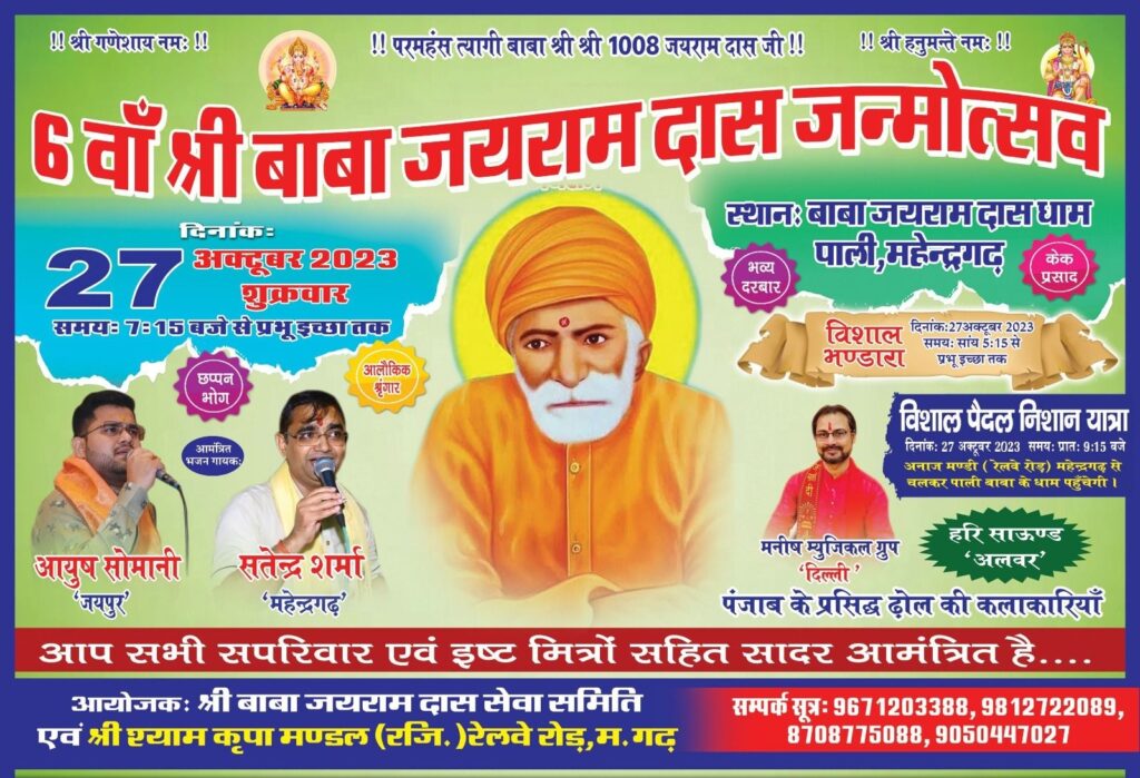 महेंद्रगढ़,23अक्टूबर(सुशील शर्मा)।द्वितीय भव्य पैदल ध्वजा यात्राश्री बाबा जयराम दास सेवा समिति एवं श्री श्याम कृपा मंडल महेंद्रगढ़ द्वारा अनाज मंडी