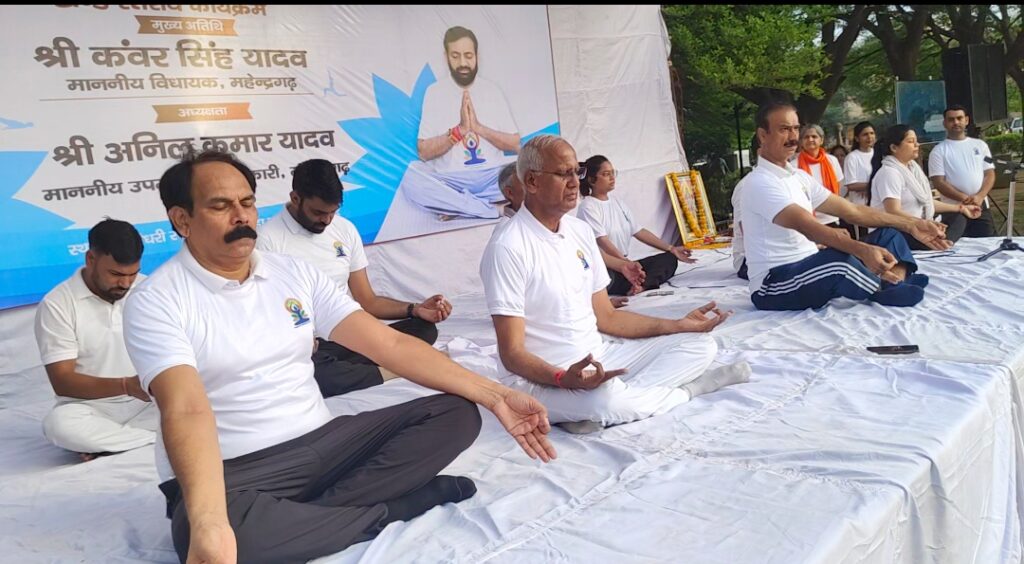 महेंद्रगढ़, 21 जून (परमजीत सिंह/शैलेन्द्र सिंह)। ‘एक पृथ्वी, एक स्वास्थ्य के लिए योग’-थीम के साथ आयोजित हुआ योग दिवस पर