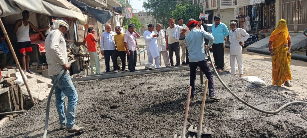 महेंद्रगढ़, 21 मई(अमरसिंह सोनी)।#newsharyanaशहर के 11 हट्टा बाजार के सड़क निर्माण कार्य में घटिया सामग्री के प्रयोग का आरोप लगाते