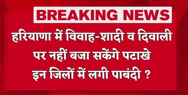 हरियाणा के 14 जिलों में पटाखों पर पूर्ण प्रतिबंध, उल्लंघन पर सजा और भारी जुर्माना चंडीगढ़,10 अगस्त (स्टेट हेड परमजीत
