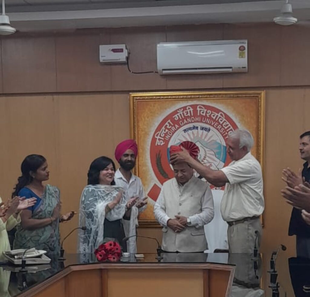 टीचर्स एसोसिएशन की तरफ से कुलपति का पगड़ी पहनाकर सम्मान