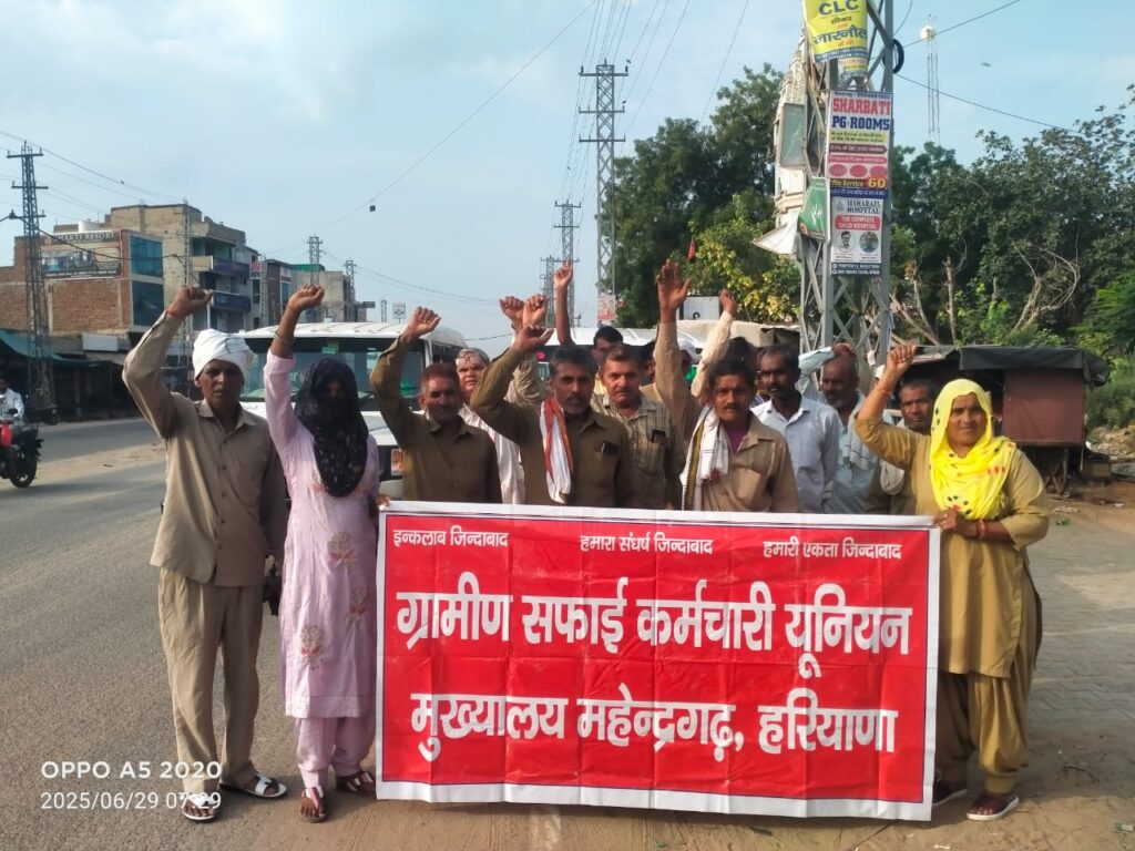 महेन्द्रगढ़,29 जून (परमजीत सिंह/शैलेन्द्र सिंह)।ग्रामीण सफाई कर्मचारी युनियन हरियाणा मुख्यालय (महेंद्रगढ)के द्वारा आयोजित अपनी मागो को लेकर पंचायत मन्त्री कृष्ण